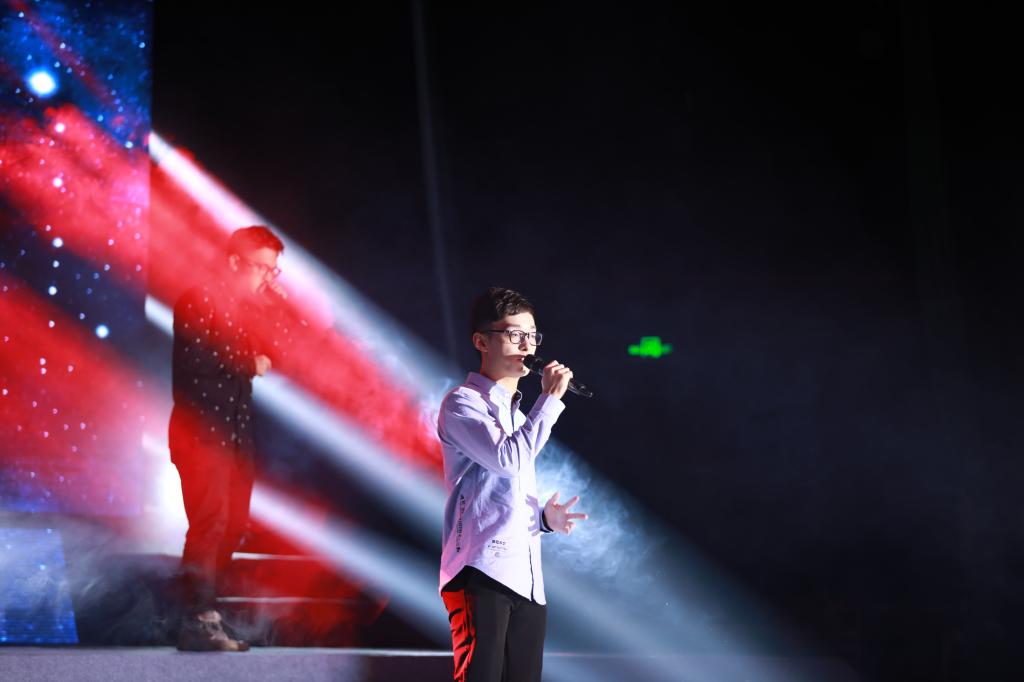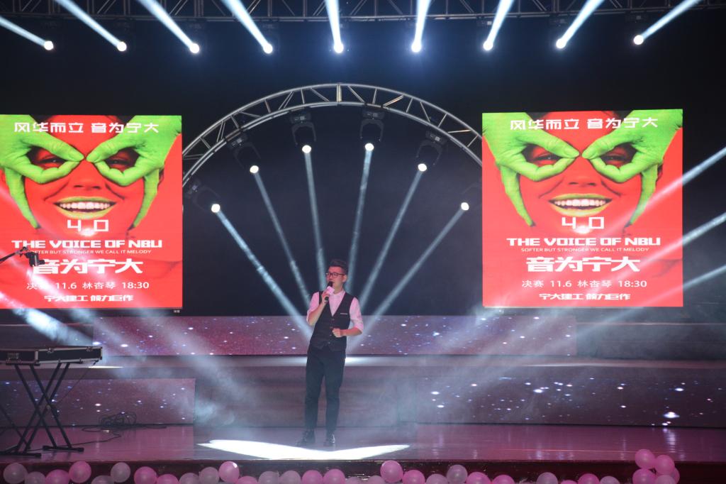 随着灯光特效打下神秘女神现身现场,在观众的欢呼声中本次晚会主持人李伟杰走上舞台。现场版沙画回顾音为宁大四年历程唤起众多音乐爱好者的共鸣!往届冠军选手返场深情献唱《学不会》,引出本次比赛首次高潮。据悉本次决赛赛制为PK赛,选手两两PK ,晋级选手依次帮唱展示,最后晋级的四位选手进行终极对决,由网上票选出的100位大众评委选出本次比赛的冠军。比赛期间,选手们可谓各有千秋,二胡配《悟空》、文静美女配《BEAT IT》,更有国风暗香,曲风多样,让观众大饱耳福。最终秦少杰同学凭借其精湛的唱功征服了在场的评审和观众获得了冠军。