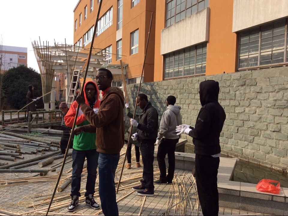 教学体系,是实践真正地进入教学探索高校教学改革的创新之举。此外,聘请竹艺老先生王如贤进高校,也是高校课程与社会接轨的一次探索。俞金波老师说,此次亭子改造工程是教学过程的课堂的延伸,突破了教室这一物理空间,直到了室外;是课程师资的延伸,课堂中的老师为民间手工艺人,极大地提高了同学们的兴趣;是课程时间的延伸,学生利用课余时间参与制作建筑模型。建筑系课程为了与国际接轨,所有课程也都是有具有留学背景的老师担任。此次改造工程有留学生广泛参与,也是对传统竹文化继承与发扬。