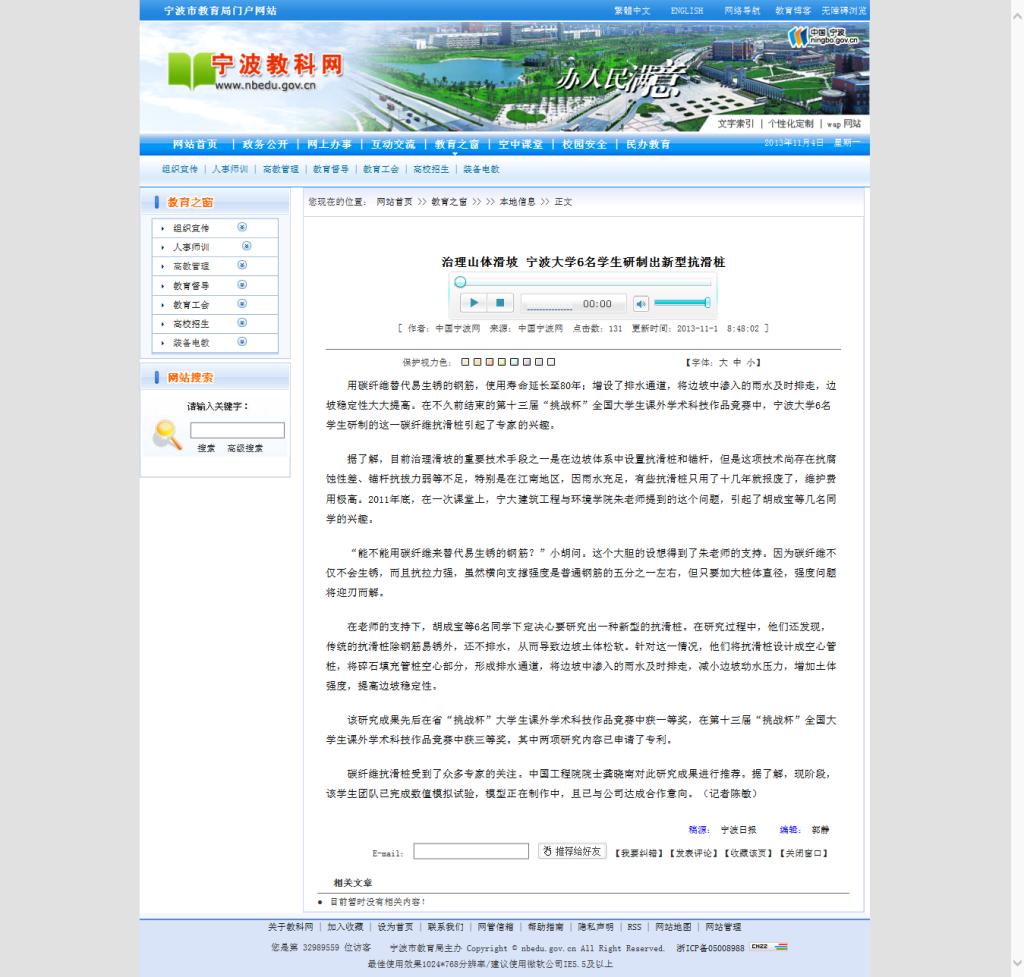 学子的作品所带来的影响仍在持续发酵。截止到目前,已有宁波日报等大众媒体对本作品及其创作团队进行详细报道,更有凤凰网、中国岩土网、宁波市科技信息网、天津网、长春科技网等进行转载报道。而开元棋牌