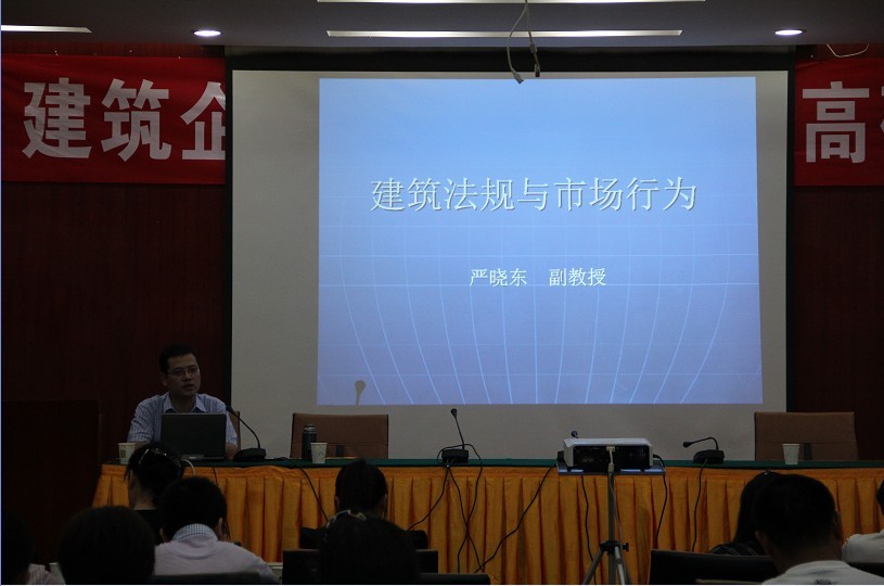 开班仪式之后,开元网 副教授,宁波宁大工程建设监理有限公司副总经理,国家注册监理工程师、国家注册造价工程师严晓东老师为学员们上了第一堂课:《建筑法规及市场行为》。