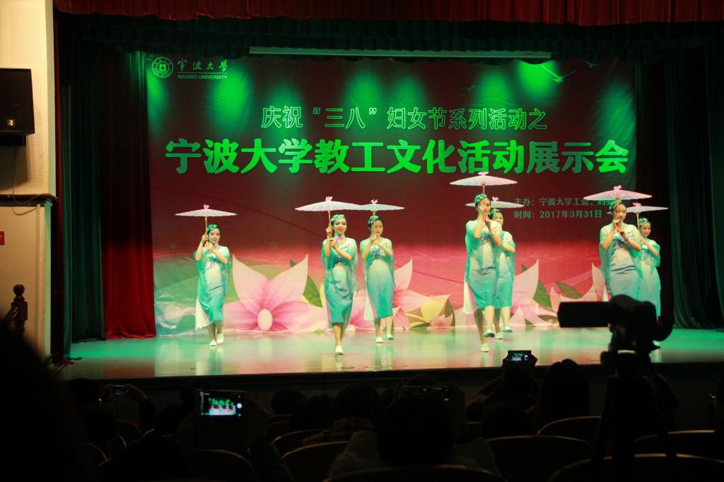 女教工表演了一段柔媚韵致的中国古典舞《小城雨巷》,博得了在场观众的片片掌声。