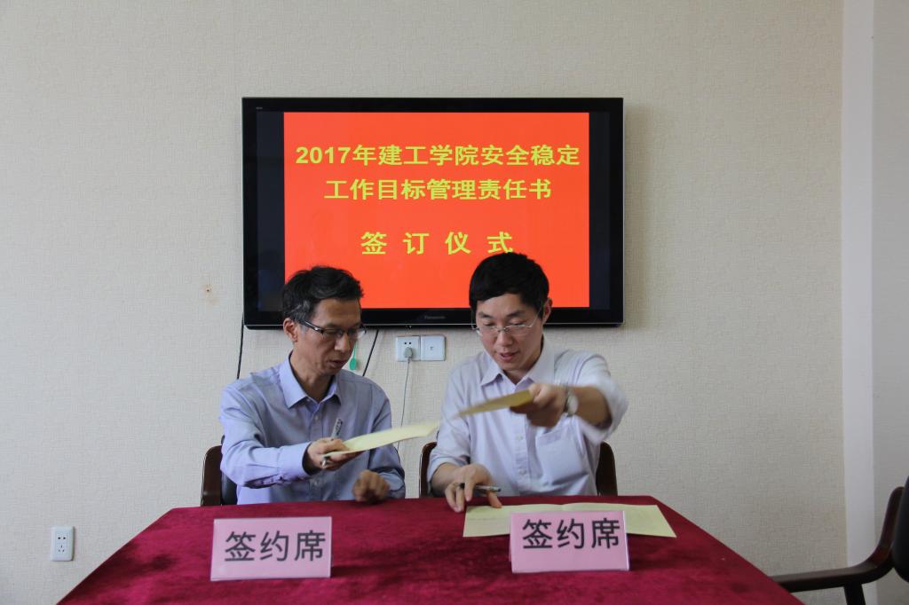5月8日下午,开元网 安全稳定工作目标管理责任书签订仪式在开元网 303会议室举行。会上,开元网 安全稳定工作责任人郑荣跃院长分别与各个基层学术组织系/所负责人签订了《2017年建工开元网 安全稳定工作目标管理责任书》。