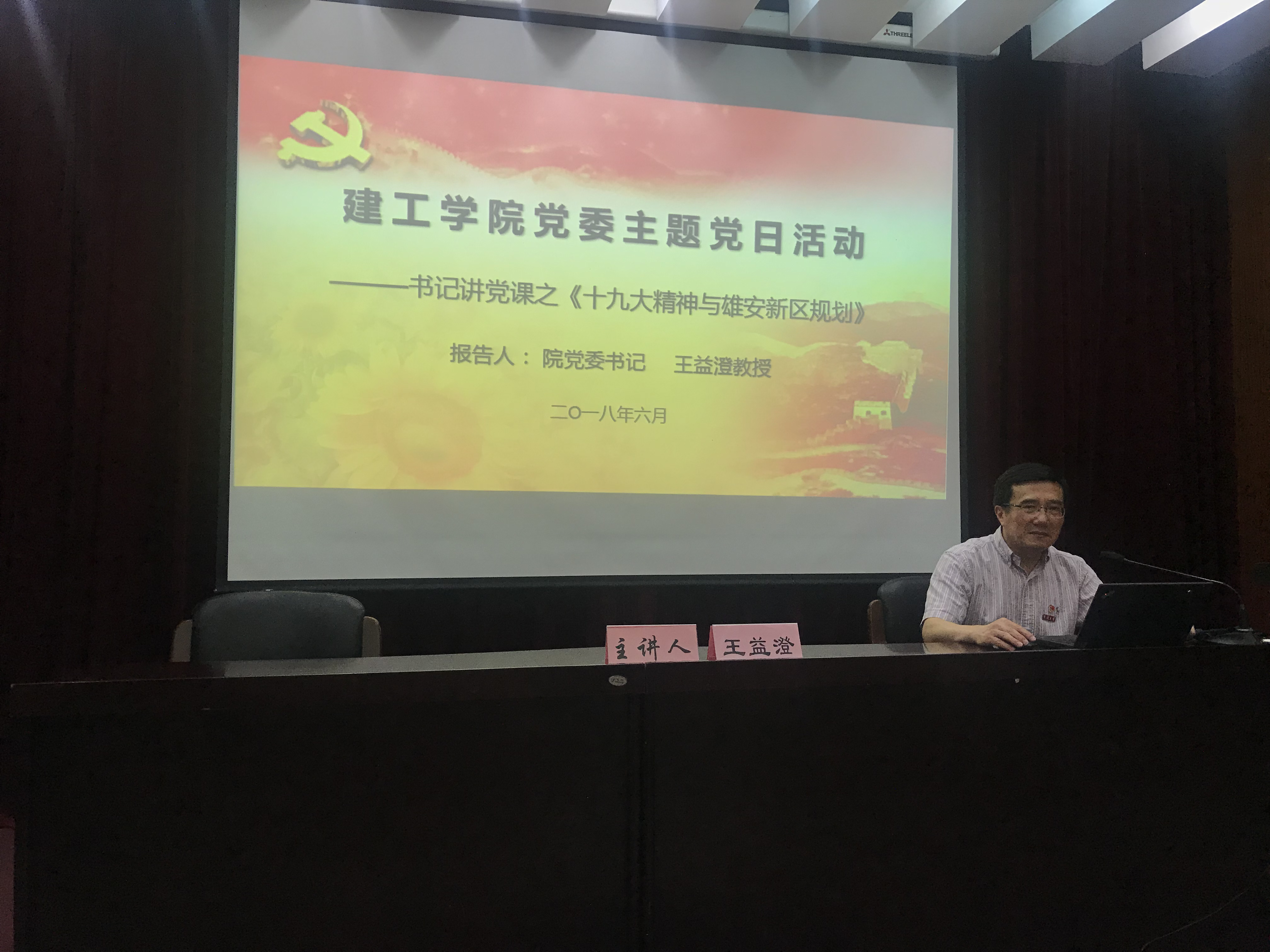6月22日下午,开元网 建工开元网 在开元网 报告厅成功举行了“全院师生党员同上一堂党课活动”暨党委主题党日活动。开元网 党委书记王益澄作题为《十九大精神与雄安新区规划》的报告。建工开元网 全体师生党员共同聆听了报告会。