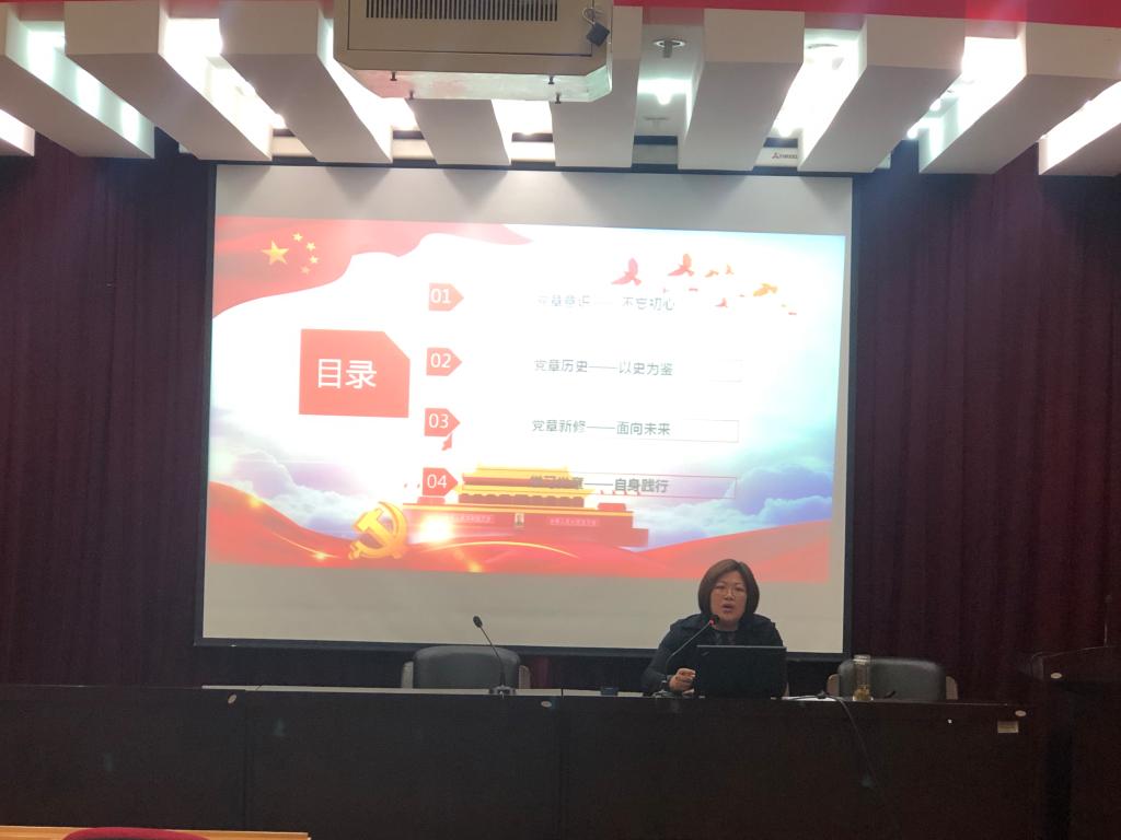 2019年4月28日下午4:50到5:50,开元网 建筑工程与环境开元网 分党校第三十六期入党积极分子培训班第二讲《十九大新党章解读》讲座在建工开元网 报告厅召开,主讲为开元网 党委副书记汪丹老师。