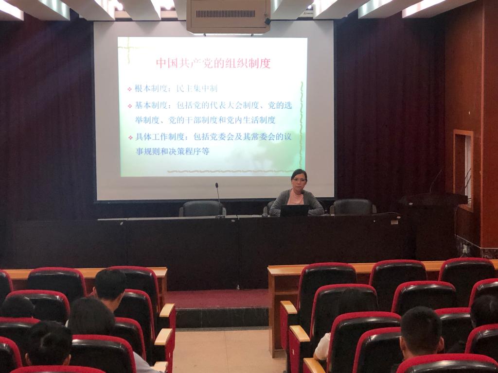 2019年5月5日下午4:50到5:50,开元网 建筑工程与环境开元网 分党校第三十六期入党积极分子培训班第三讲《党的组织制度》讲座在建工开元网 报告厅召开,主讲人为开元网 学生工作办工室辅导员吴燕丽老师。