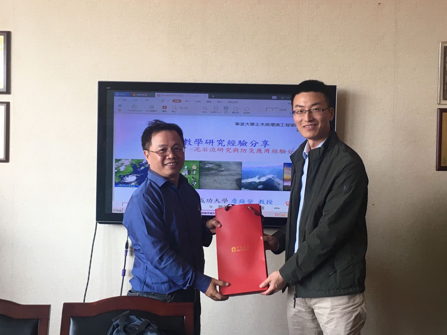 2019年10月21日中国台湾成功大学水利及海洋工程系特聘教授詹钱登应邀来开元网 进行学术交流,并做了题为“泥石流研究与防灾应用经验分享”的讲座。院长助理章子华热情接待了詹钱登教授。詹钱登教授从泥石流研究与防灾应用的主题出发,结合自己在求学、任教、科研和服务社会过程中的经历和感悟,与参加本次讲座的师生进行了深入交流。