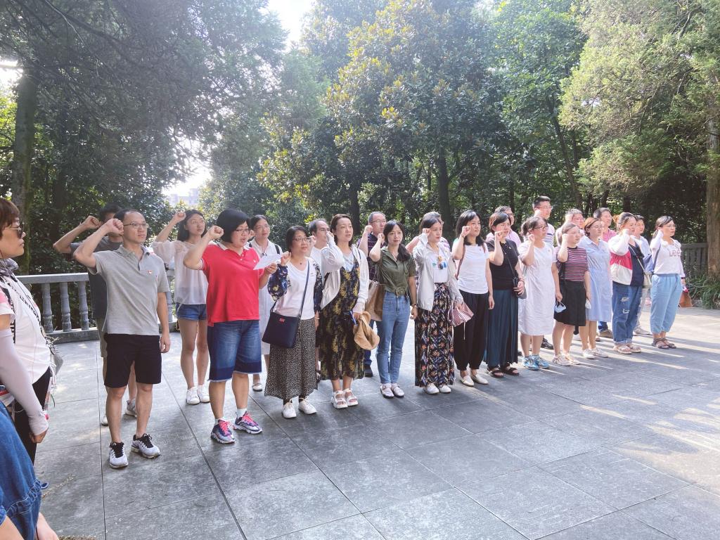 在爱国主义教育基地孝丰革命烈士陵园,党员认真聆听了革命先烈的事迹,向革命先烈敬献花圈表达缅怀之情,在纪念碑前重温入党誓词,用铿锵有力的誓言将为共产主义奋斗终身的庄重承诺铭记于心。