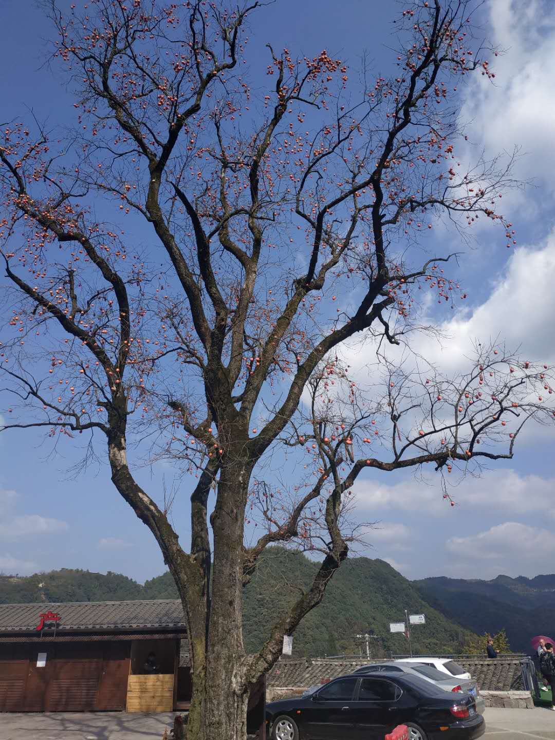 彤的红柿子甚是让人“惊艳”,粗壮刚劲的枝杆给山村撑起红彤彤的一片天。