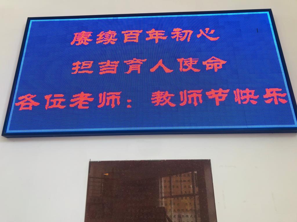 教师节当天,深入开展“为教师亮灯”公益活动,弘扬尊师重教良好风尚。以字幕滚动方式为教师公益亮灯,亮灯主题词为“赓续百年初心,担当育人使命!”。
