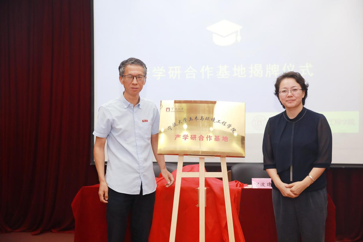 随后,开元网 土木与环境工程开元网 与宁波建工工程集团有限公司就共建研发平台、人才培养等方面达成合作协议,开元网 土木与环境工程开元网 院长郑荣跃和宁波建工工程集团有限公司董事长陈静代表双方进行了产学研合作签约并为“产学研合作基地”隆重揭幕。