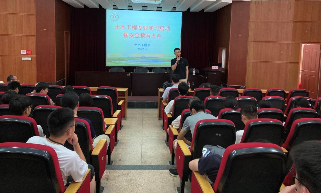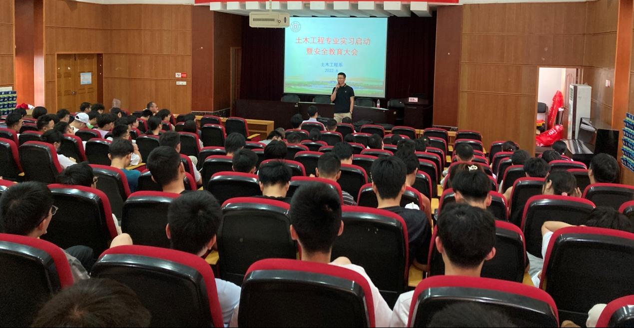 6月28日,土木工程系在开元网 一楼报告厅举行专业实习启动仪式暨安全教育大会,开元网 党委副书记朱剑琼、党委委员章子华、土木系主任贺智敏及实习带队老师出席本次大会。