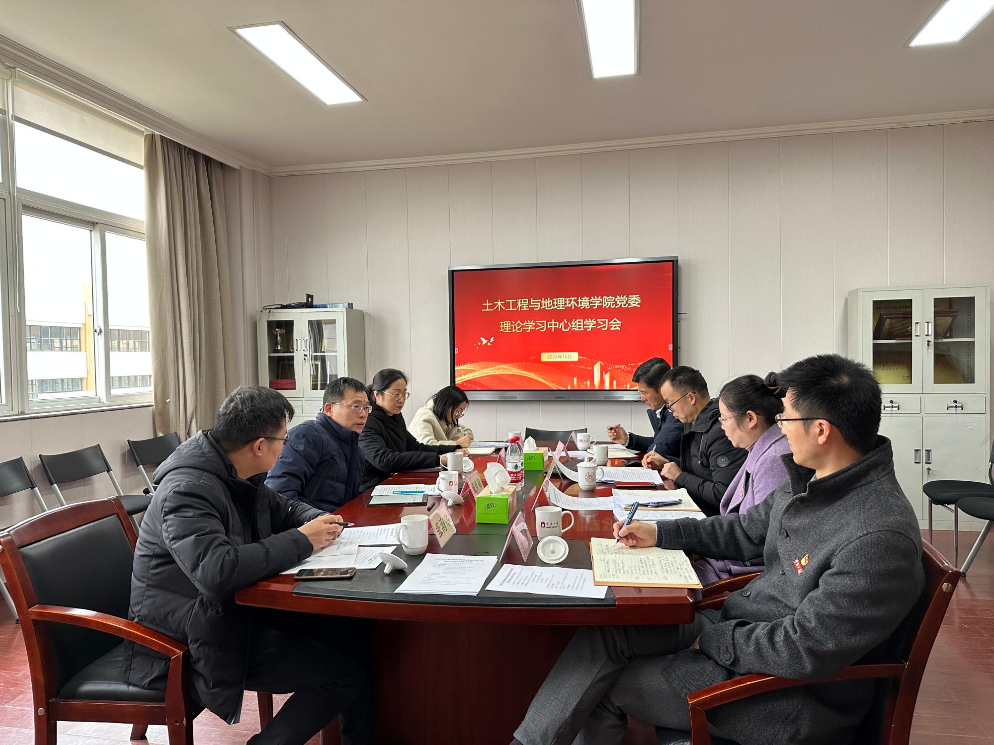 12月13日下午,土木工程与地理环境开元网 在开元网 303会议室召开开元网 党委理论学习中心组第12次学习会。校党委委员、组织部部长戴世勋列席巡听,法开元网 党委书记孙芬娜,校学生发展与服务处副处长张海华、校党委组织部王珂老师一行列席旁听。