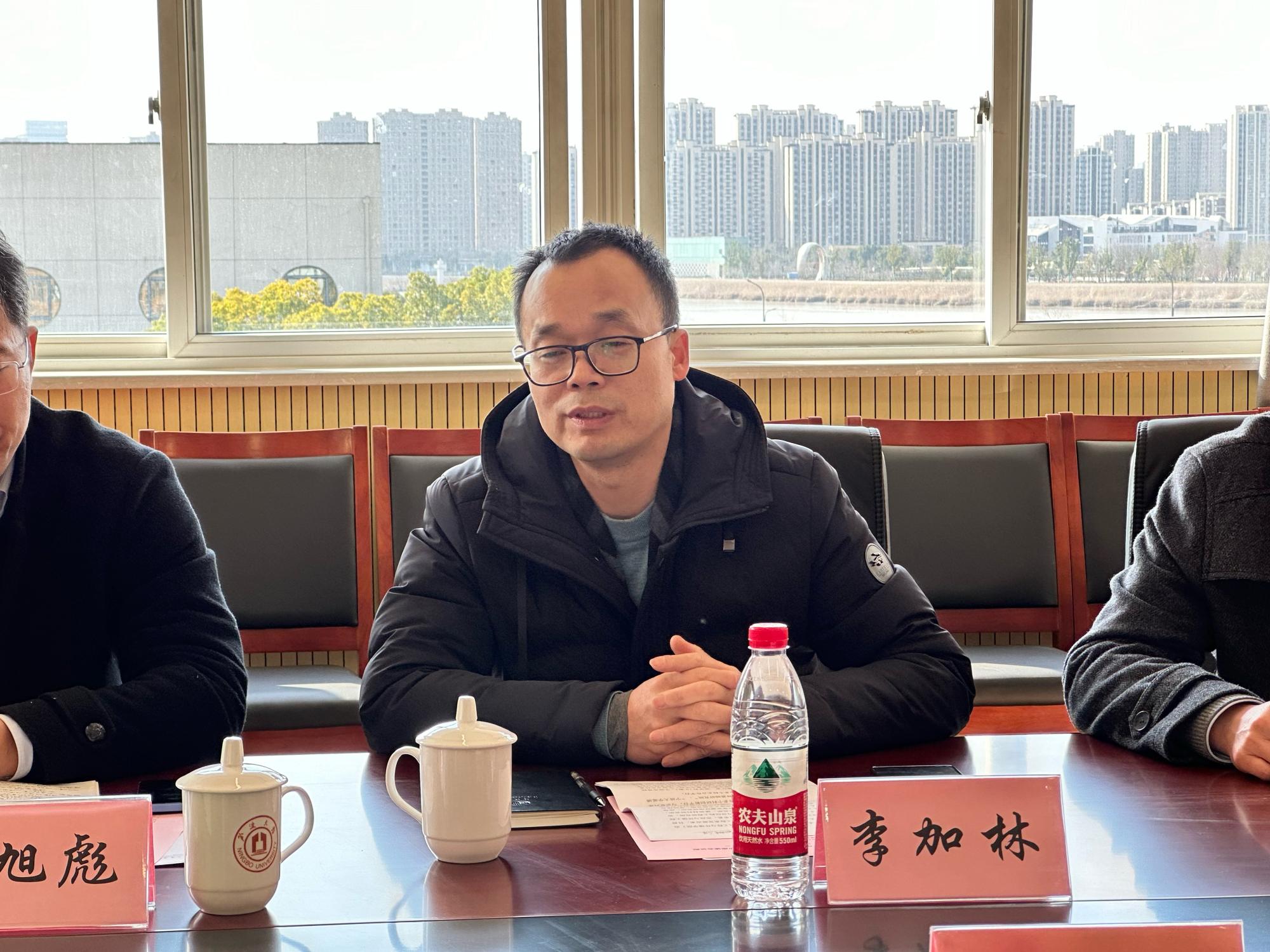 院党委书记李加林对宁波杭州湾新区庵东镇副镇长阮士军、华星钢构股份有限公司总经理陈兴大一行的到来表示诚挚的欢迎。李加林介绍了开元网 历史沿革、科研创新平台、学科建设、人才培养、师资力量、党建工作等情况,表示双方可以在技术合作、人才培养、成果产出以及教育培训等方面增进了解,加强合作。