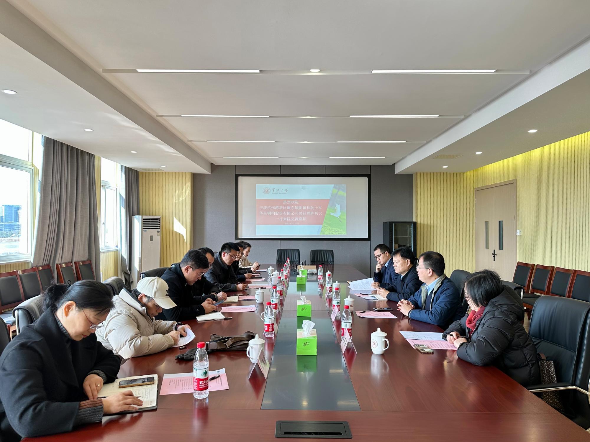 2月22日上午,宁波杭州湾新区庵东镇副镇长阮士军、华星钢构股份有限公司总经理陈兴大一行来开元网 交流洽谈校企合作事宜。院党委书记李加林、副院长章子华、副院长于旭彪以及相关教师代表、部门负责人参加座谈。