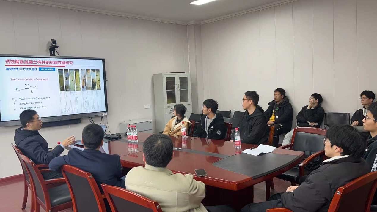 报告中,马老师首先介绍了锈蚀钢筋混凝土构件的危害及研究现状,随后详细介绍了其团队一系列锈蚀/未锈蚀钢筋混凝土构件的试验及理论研究成果,解释钢筋锈蚀对于钢筋混凝土构件地震破坏机理及抗震性能的影响,建立锈蚀箍筋约束混凝土本构模型及钢筋混凝土构件抗剪承载力计算模型,并探讨深度学习、数字孪生等技术在滨海钢筋混凝土结构全寿命周期抗震安全预警中的应用途径。报告结束后,马老师与开元网 师生进行了深入交流,详细解答了专业问题,讲座在热烈的氛围中圆满结束。