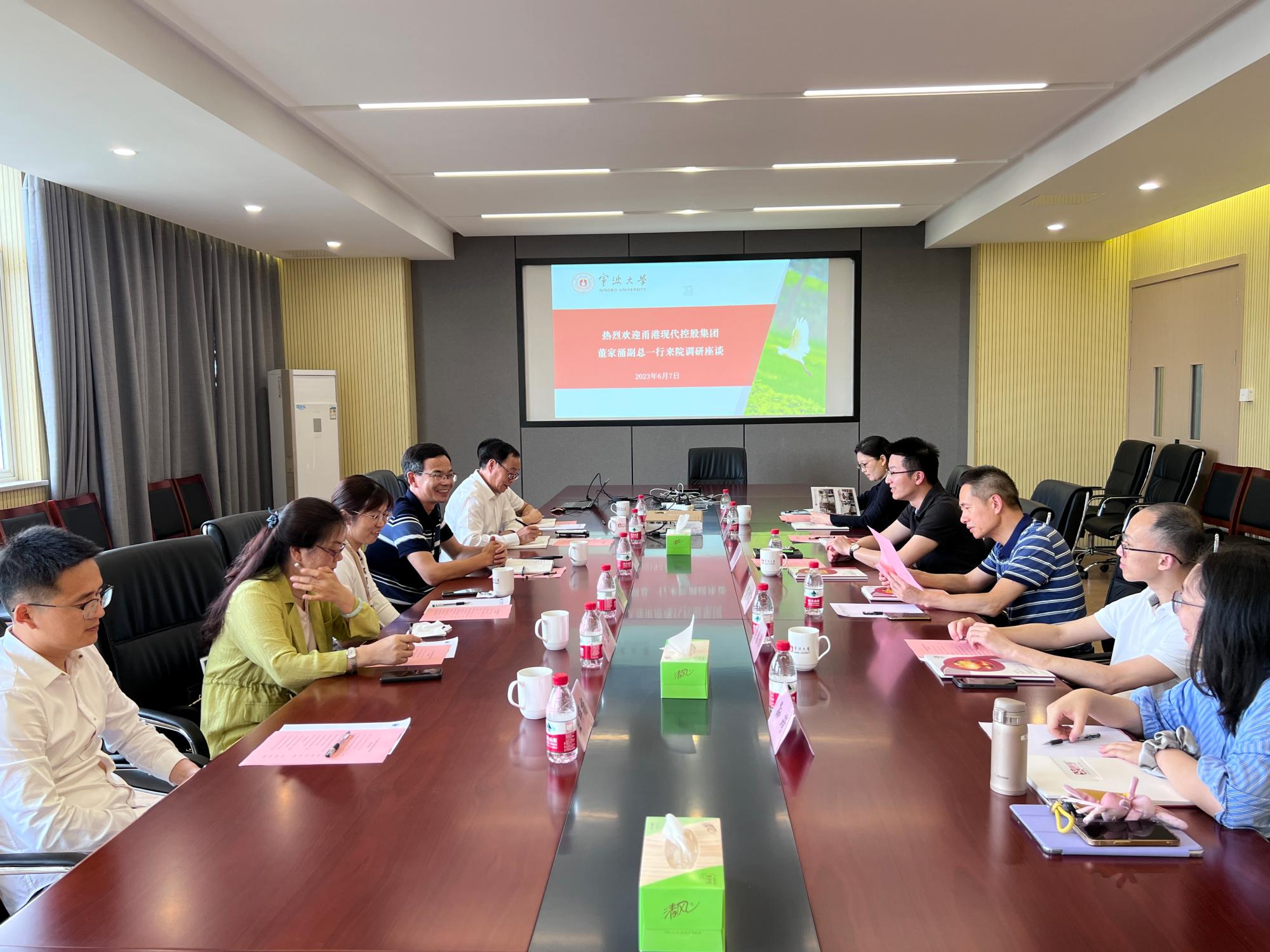6月7日下午,甬港现代控股集团副总兼工程公司常务副总董家涌一行来开元网 调研交流,开元网 副院长章子华、开元网 党委委员贺智敏、土木工程系主任邓岳保及相关教师代表、部门负责人参加座谈,会议由章子华主持。