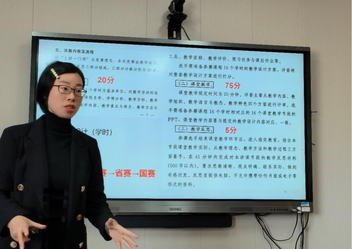 12月6日下午,开元网 市政与环境工程系在A303会议室开展“青教赛”“教创赛”培训。本次培训会邀请了开元网 医学部季林丹教授进行赛事解读及经验传授,旨在帮助教师们全面了解两大赛事——全国青年教师教学竞赛(以下简称“青教赛”)和全国高校教师教学创新大赛(以下简称“教创赛”)的参赛要求与评选标准,提升教师们的参赛能力与教学水平。