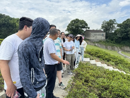 接着,师生们来到“无废之旅”的第二站——宁波市奉环投资有限公司。在企业导师毛乾光带领下,师生们实地参观了已经完成终场覆盖及生态修复的一期项目、即将进行终场覆盖的二期填埋项目以及危险废物固化飞灰填埋的三期项目。结合实际工程案例,毛老师和师生们针对垃圾填埋场设计、垃圾渗滤液处理以及填埋气体综合利用等问题进行了深入探讨。