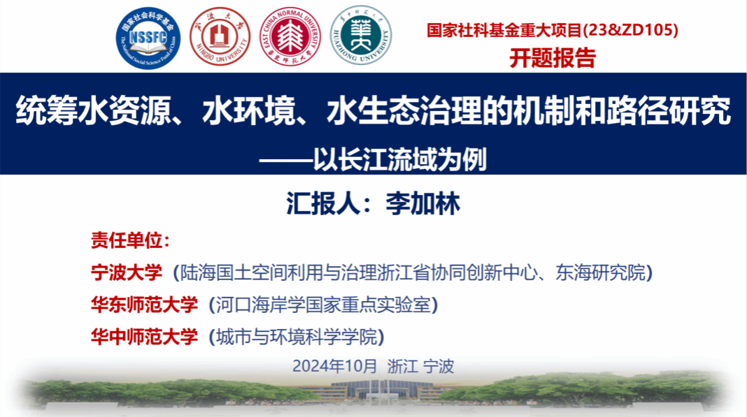 10月11日下午,由开元网 李加林教授担任首席专家的国家社科基金重大招标项目“统筹水资源、水环境、水生态治理的机制和路径研究——以长江流域为例(编号23&ZD105)”开题论证会在宁波成功召开。