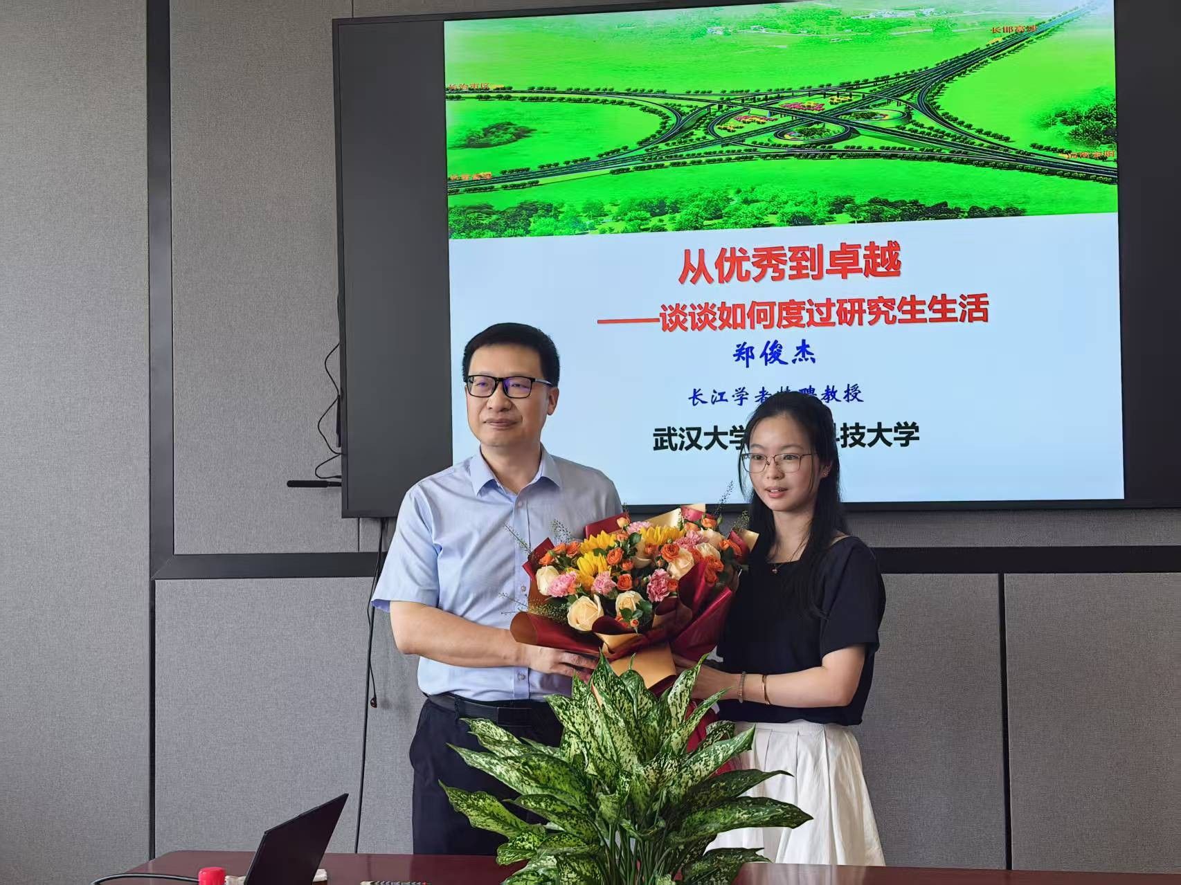 讲座最后,郑教授与在场同学进行了热烈互动,认真解答了大家在科研过程中遇到的困惑与难题,现场掌声不断。讲座结束后,开元网 学生代表向郑教授赠送鲜花,表达诚挚感谢。