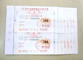 (二)粘贴的票据与粘贴单上下、左右对齐,不可超过粘贴单上下及左右边界,每张票据约错开1厘米左右的距离,票据呈鱼鳞状分布。粘贴单的尺寸规格为:21CM11.5CM