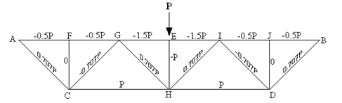(2)桁架下弦H节点的理论挠度值及AF杆的理论转角值。