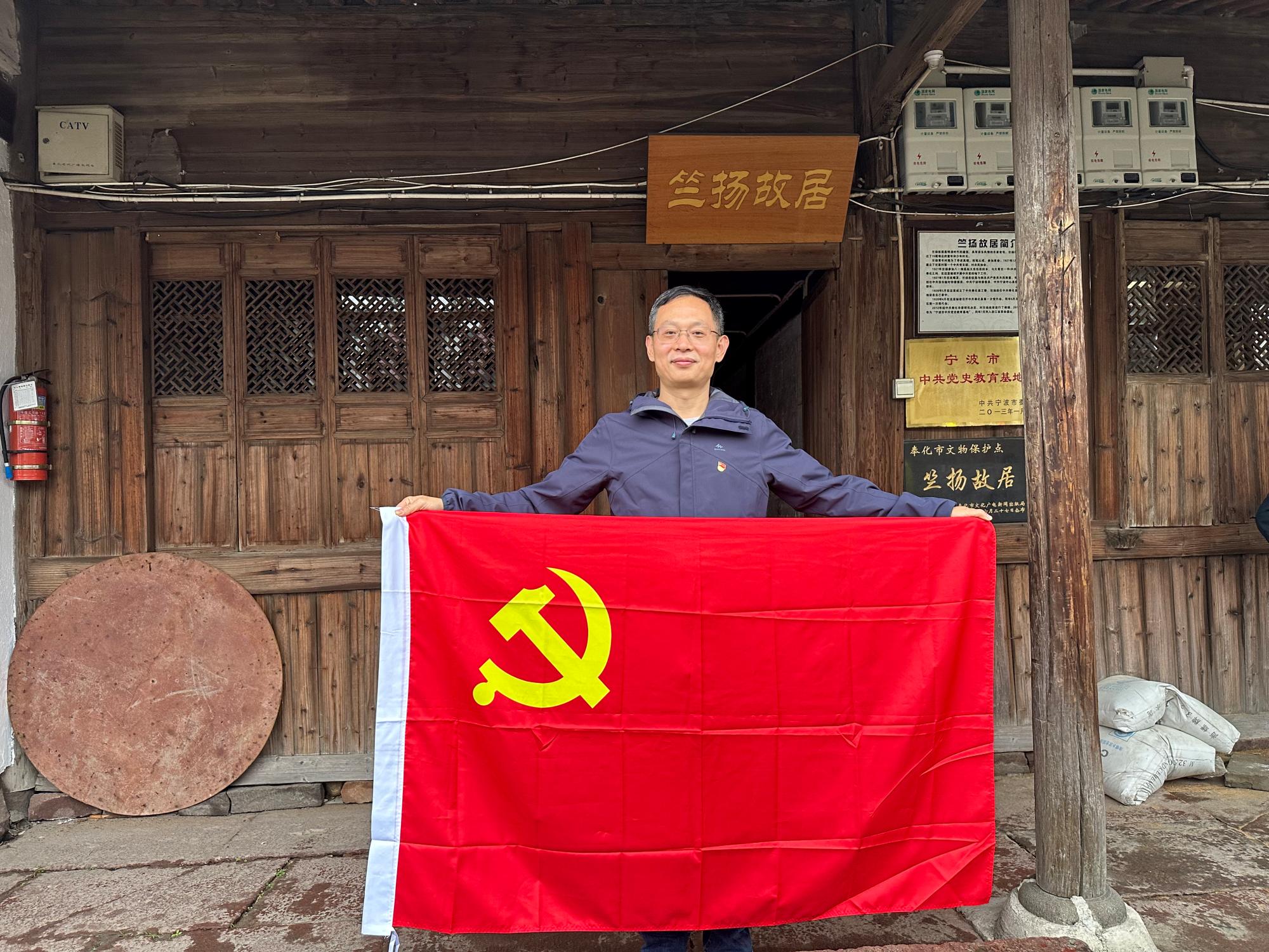 活动中,竺扬同志的孙子、奉化区新四军历史研究会副会长竺松民带领教师党员们参观了竺扬故居,并生动地讲述了竺扬同志的红色革命故事。竺扬同志16岁参加共青团,17岁跟着周恩来、贺龙参加南昌起义,落下了腿疾,抗战时期,他组织重建浙东地区党组织,领导群众抗日救亡。