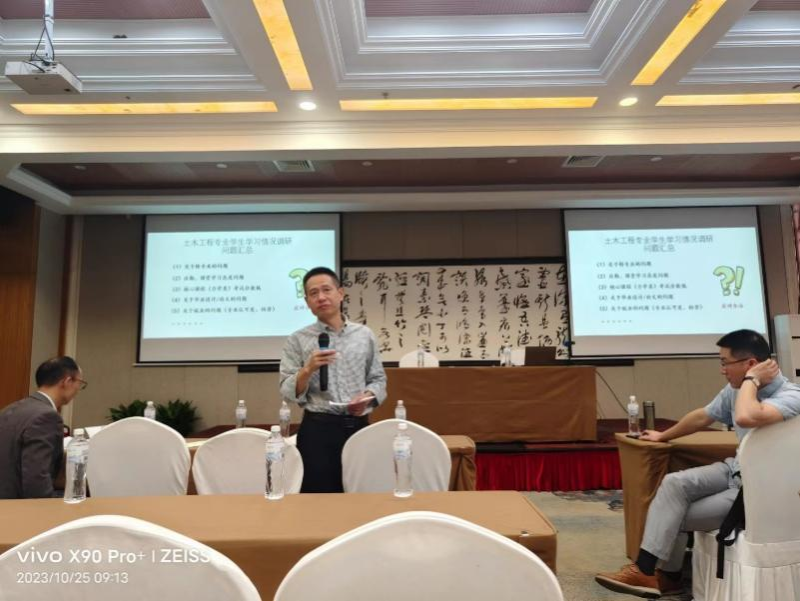 与会党员教师认真聆听党课,并在会前从实际出发,通过走访学生宿舍、与同学面对面交流,联同教务办、学工办以及学生党支部等收集学生学习状态信息,对土木工程专业学生学习情况进行深入调研,全面了解学生学习状态,发现学生存在问题并在会上进行探讨。