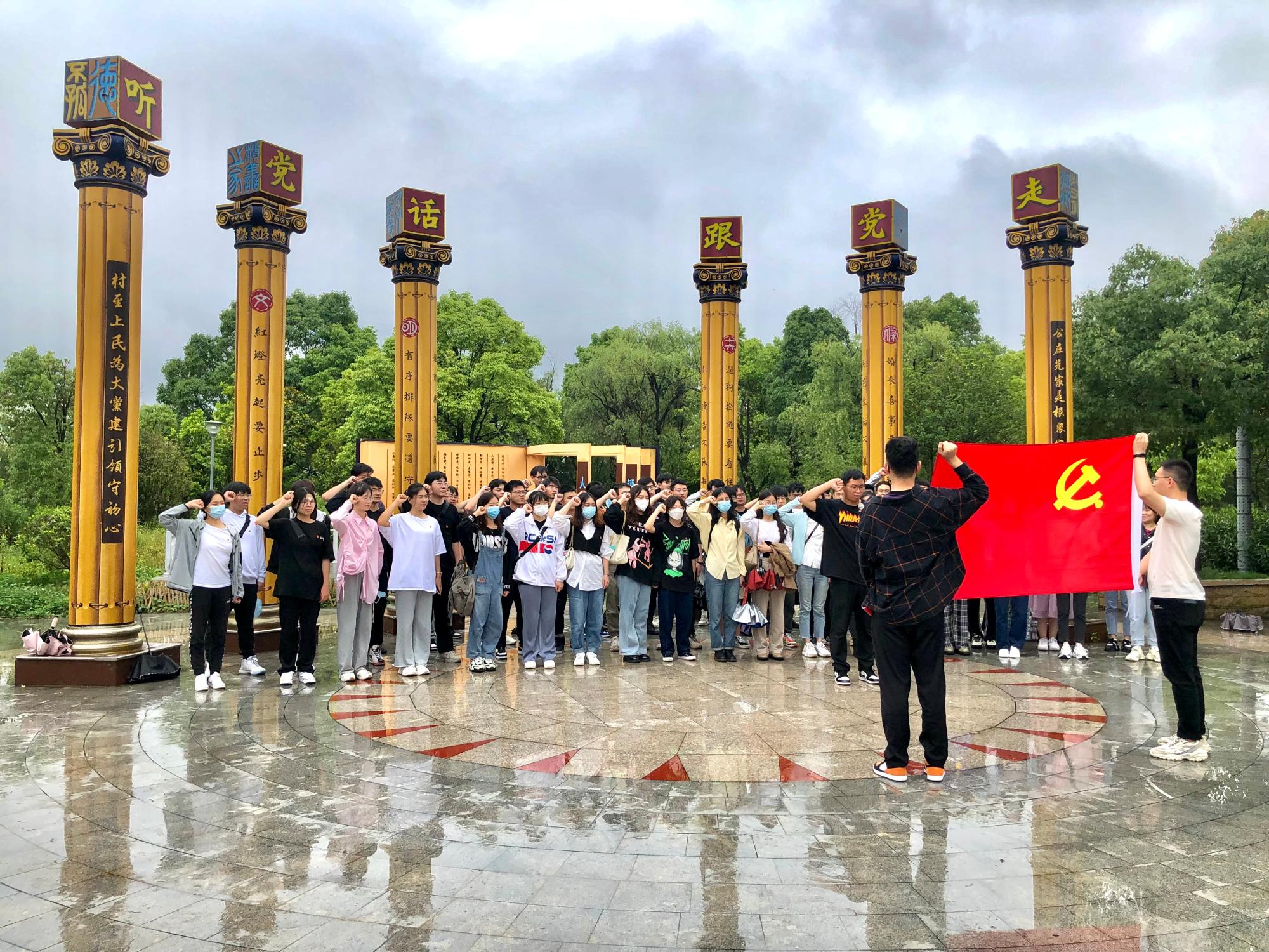 随后,师生一行一同乘车前往第一站:慈溪市崇寿镇傅家路村,参观“海塘廉园”“八廉韵景”等廉政特色景点。“村至上,民为大,公在先,家是根……婚丧事,要从简,食住行,讲安全……”该村将涵盖村民义务、道德要求、邻里相处等内容的村规民约创作成三字经形式,发给每一位村民,并制作成了“廉雕”。学生党员们认真学习了“三字经”,感受到了淳朴的民风和清廉的乡风,在乡风文明馆前,全体党员重温入党誓词、深刻体悟中国共产党员为人民群众谋幸福的初心与使命,更加坚定了廉洁从业的信念。