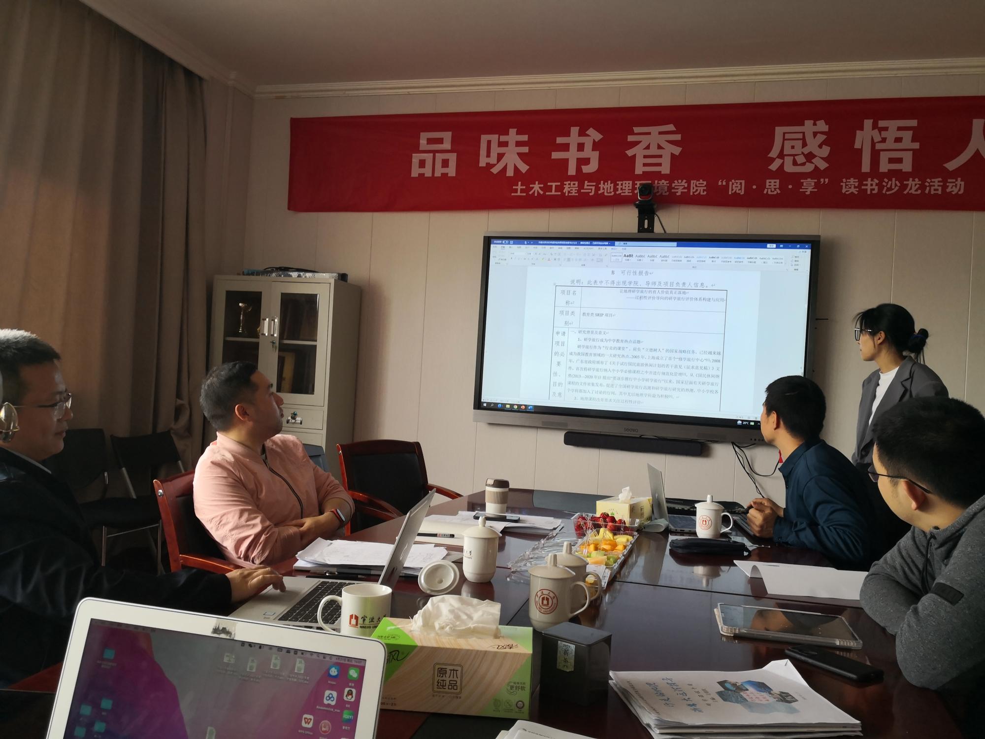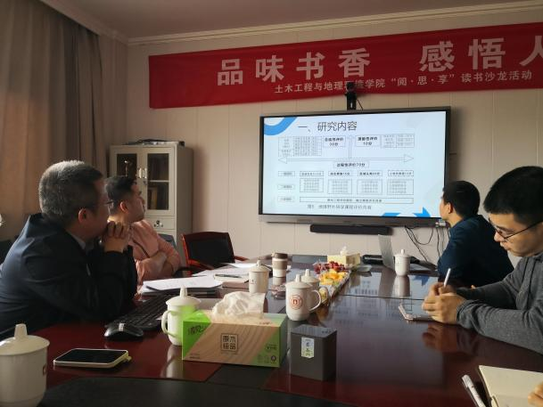地理系徐皓老师与宁波市效实中学毛锦旗老师、张晓老师、宁波市春晓中学周泽甬老师进行了深入的交流探讨,两位学科教学(地理)专业教育硕士和三位地理科学(师范)专业高年级本科生也参与讨论。