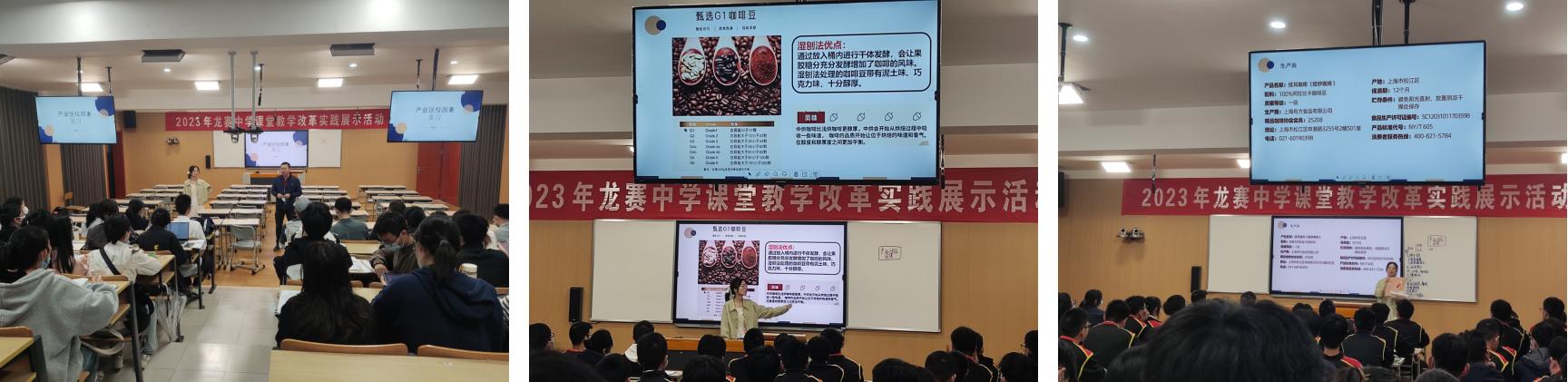 师生的到来表示了欢迎,并做了简单介绍,之后授课正式开始。首先是蔡晨辰老师为大家带来的一场干货满满的产业区位因素复习课。蔡晨辰老师立足于生活案例,从咖啡入手,通过“咖啡种植-咖啡烘焙-咖啡销售”的产业链串联了农业、工业、服务业区位因素与产业的集聚,教学设计环环相扣,课程内容衔接自然。课堂过程中,蔡晨辰老师充分发挥学生积极性,语言生动幽默,师生互动和谐有趣,课堂气氛活跃。
