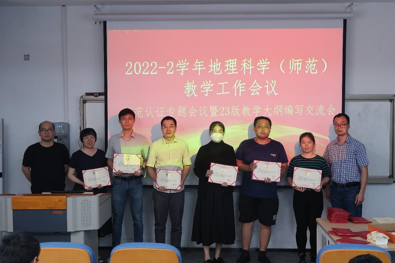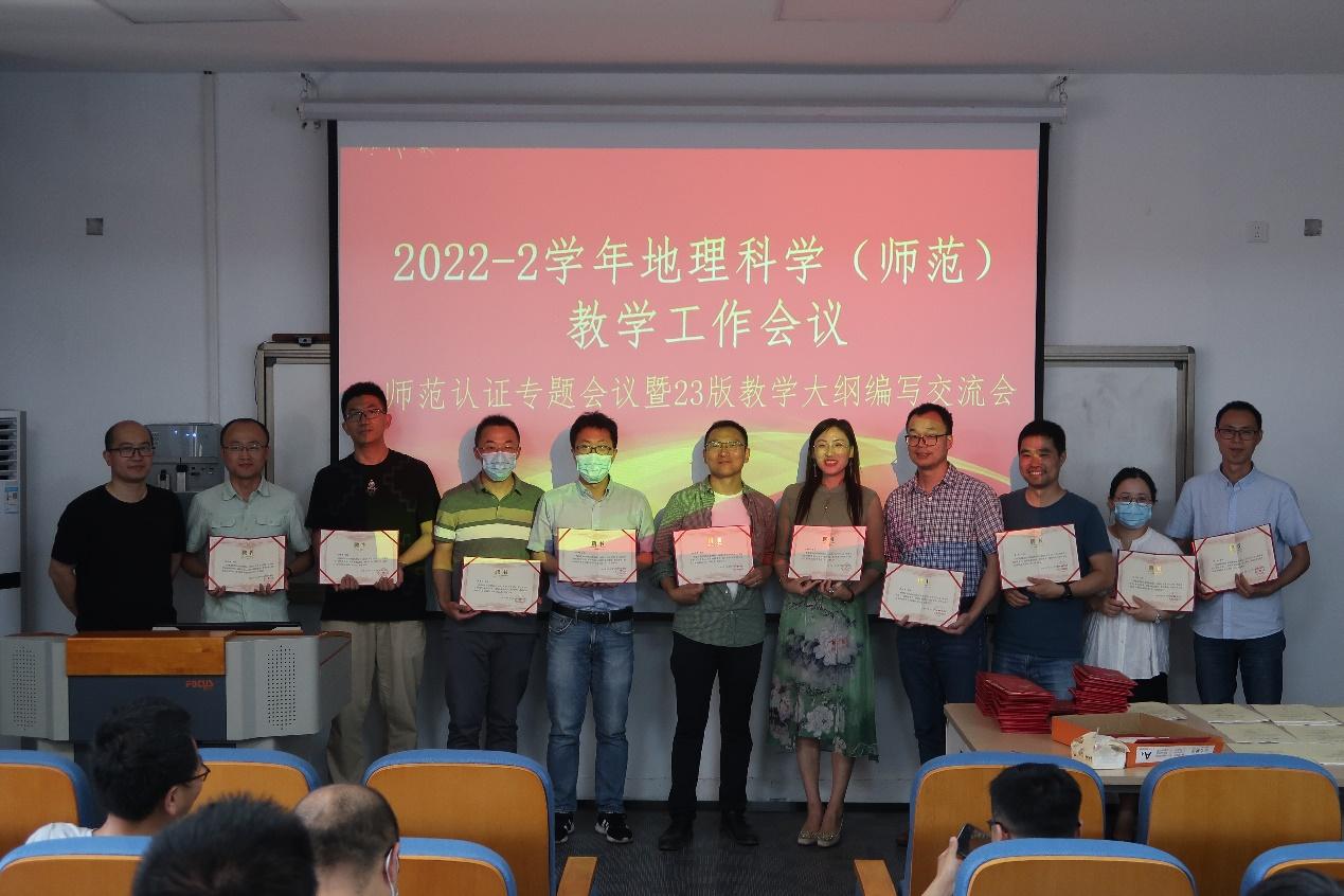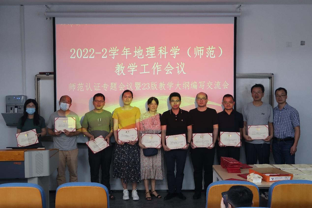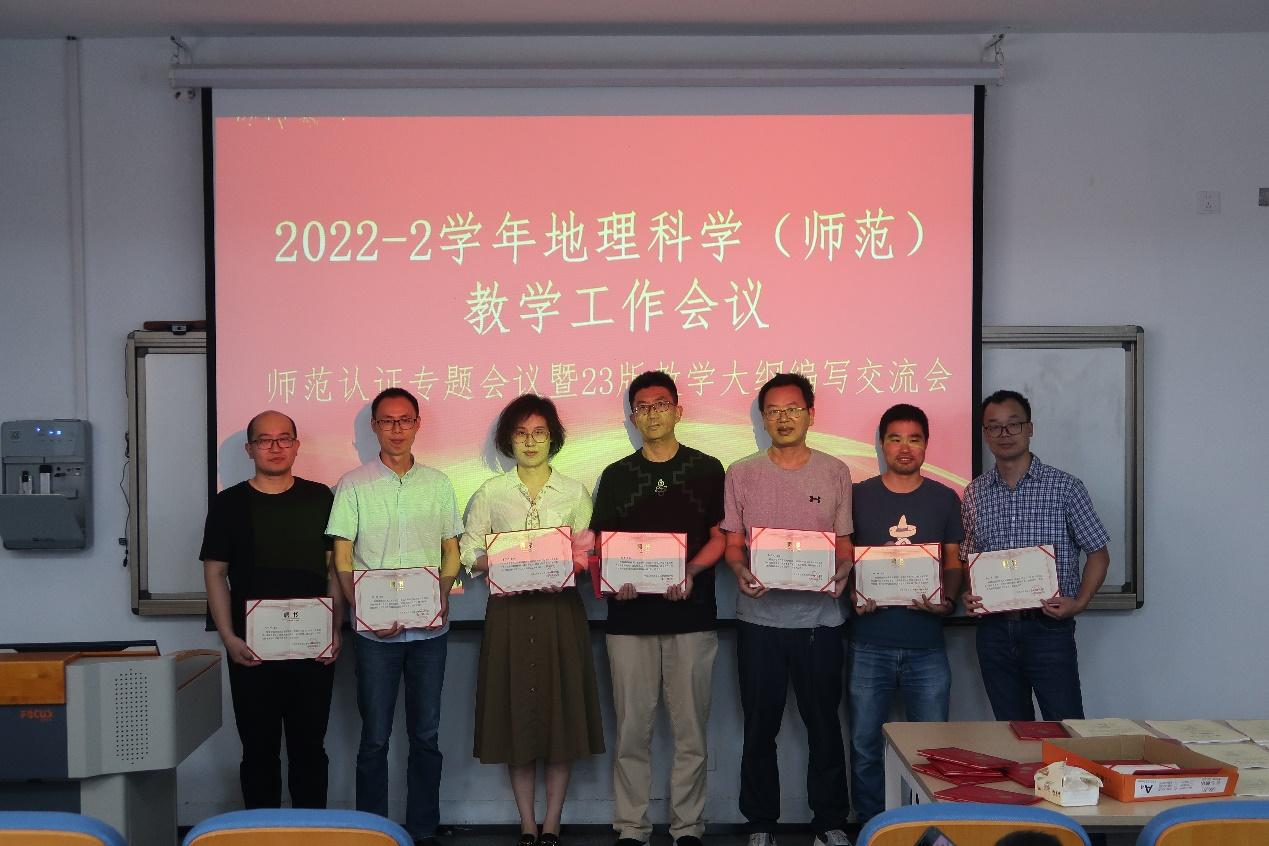 会议开始,系内成立了自然地理、人文地理、地理信息和地理教育四个教学团队,李加林老师依次为每个教学团队的课程负责人颁发2023版专业课程负责人聘书。