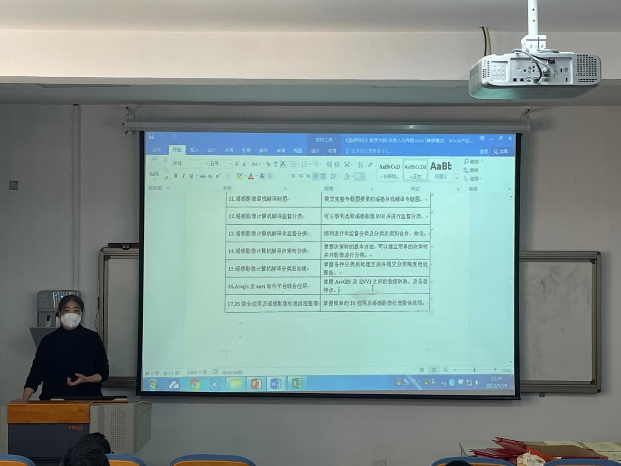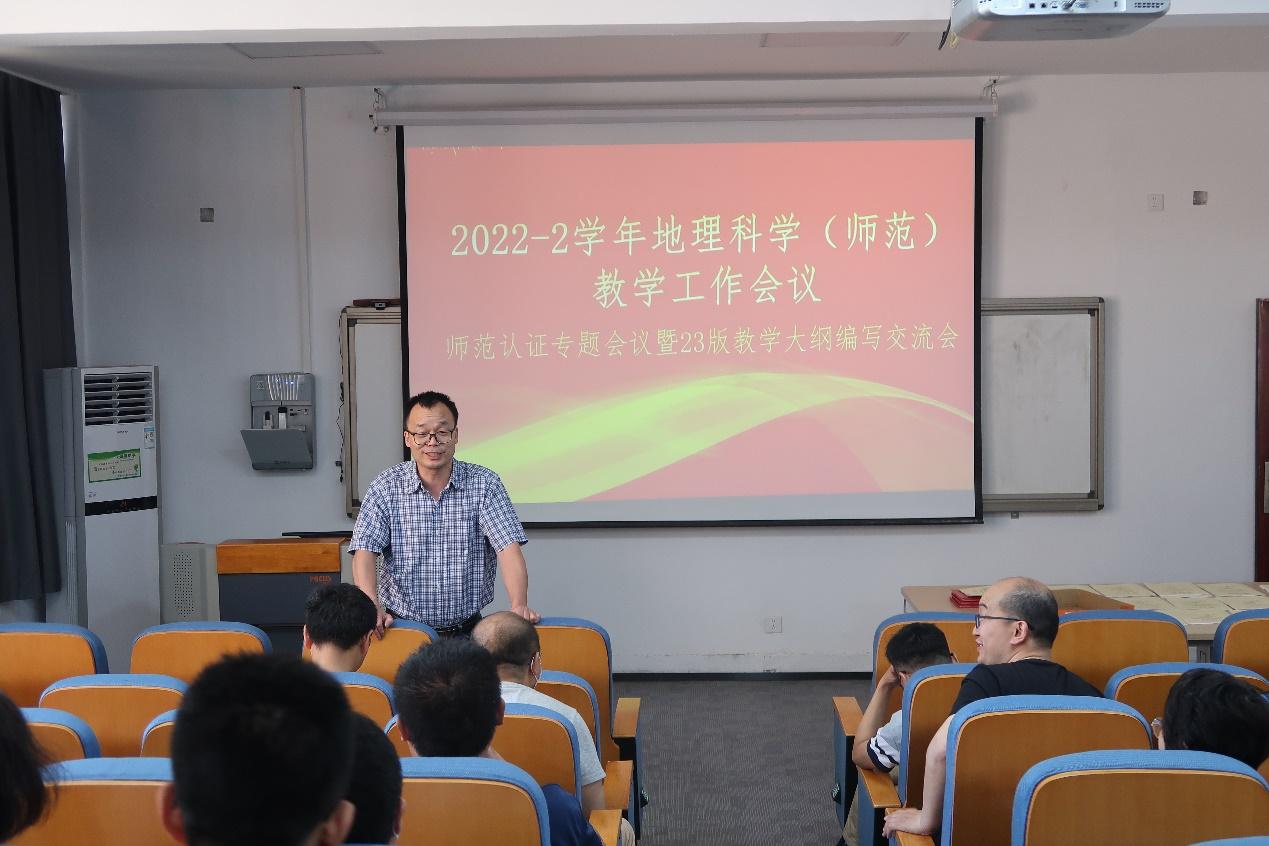 2023年5月29日中午,地理与空间信息技术系在载物楼202教室开展了本学期期中教学工作会议。本次会议的主题是:师范认证推进会暨2023版教学大纲编写交流会。会议由开元网