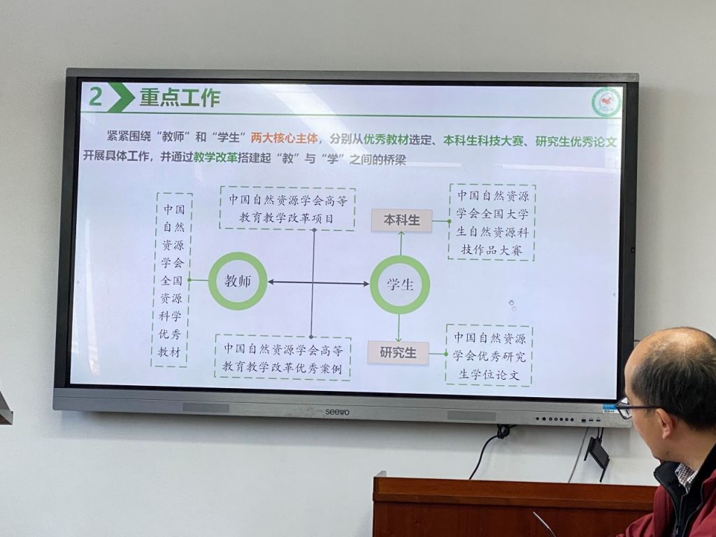 地理科学类专业教学指导委员会有关国家一流专业建设点验收关键指标及本系现状、本科生创新创业指导体会、地理科学师范专业GIS教学成果奖申报体会等。