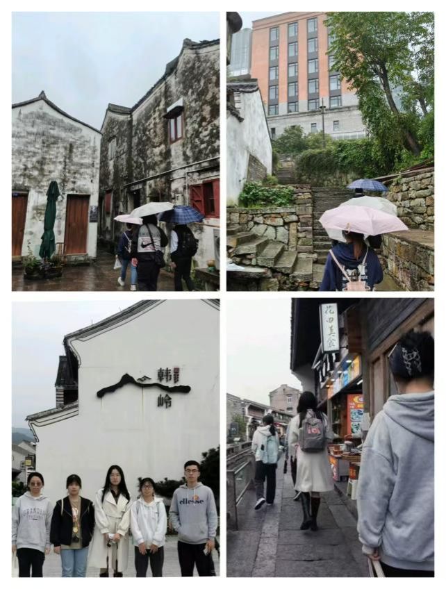 “竹杖芒鞋轻胜马,谁怕?一蓑烟雨任平生。”东钱湖畔纷纷扬扬的细雨丝毫没有冷却同学们求知明理的热情,从红墙青瓦的岳王庙到简约大气的院士中心,从古朴典雅的建设村到烟火繁华的韩岭老街,同学们将课堂中习得的理论知识应用于实际生活中,又通过实地调研的收获不断巩固自己的知识体系。在调研过程中各个小组成员之间保持着密切的沟通与协作,充分发挥各自优势,在推进小组研究进展的同时培养了沟通能力与协作精神。青衿之志,履践致远,作为开元网