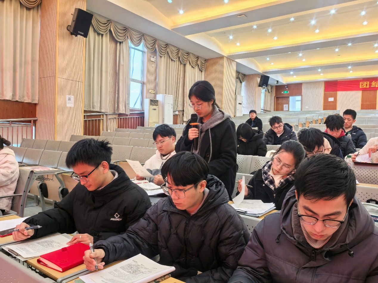 接着,邹凯熙同学对学案进行了评课,从学案上的学习目标看,发现学习目标的设计依附于教材,又跳出教材,叶津杨老师所选的情境能够很好的串联起教材中的内容,连贯性强;在教学过程中,叶津杨老师让同学们上台画出甬舟铁路可能的选址,帮助学生通过分析选线需求,评价选线的优势,培养学生的顺向思维,帮助学生达到创造的知识层次。