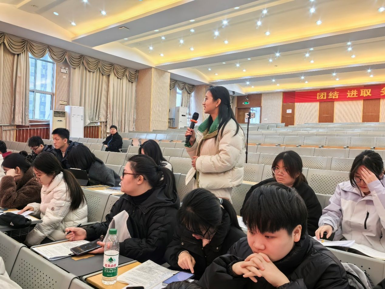 最后2022级地理科学(师范)班的华雯婕、叶健淋等同学围绕学案材料衔接、自然障碍分析、地理思维培养及教材处理等方面向叶津杨老师发出了提问。叶老师回应称:材料设计需强化图文关联,自然障碍分析应立足区域背景整合必修知识;学生思维需通过重复训练与学情诊断逐步提升;公开课需聚焦核心内容取舍,常态课可补充细化。针对问题层次性,叶老师建议以“桥隧结合”为切入点,分“海面-水体-海底”空间视角构建答题逻辑,呼应学科思维培养目标。对同学们的问题做出了一一解答,帮助同学们更好地建立地理教学中的教学思维。