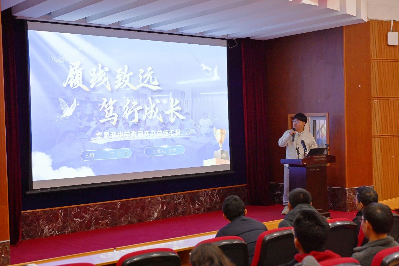 李惠利中学的实习汇报涵盖基地校概况、教学教研、班级管理、校园活动及实习收获五大板块。汇报人徐恒提到,实习期间小组累计听课30+节,完成《大气热力环流》等多节核心课程授课,落实作业批改与辅导,开展注意力、凝聚力等主题班会。同时深度参与艺术节、运动会筹备及监考工作,全方位锤炼综合能力。三个月时光虽短,却让他们完成从学生到准教师的蜕变,这份经历既是珍贵回忆,更是正式入职的坚实踏板,他们将带着所学所悟,在教育路上稳步前行。