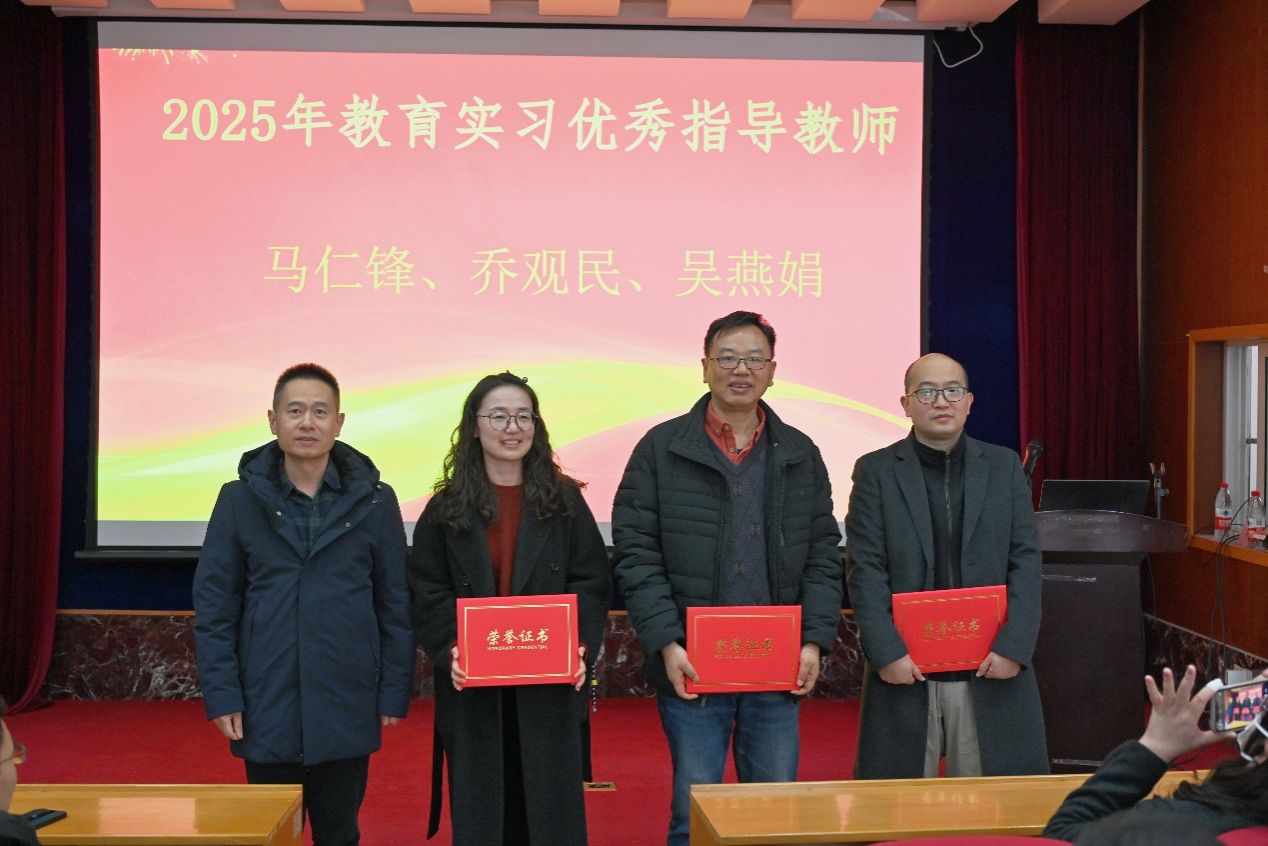 教育实习工作的大力支持和悉心指导表示衷心感谢。随后宣读了2025年教育实习优秀指导教师名单,由李加林院长为获奖教师逐一颁发荣誉证书,对他们在实习指导过程中付出的辛勤努力和取得的良好成效给予充分肯定。