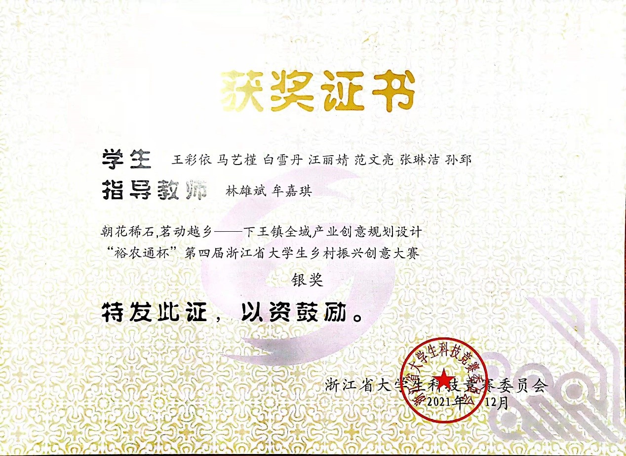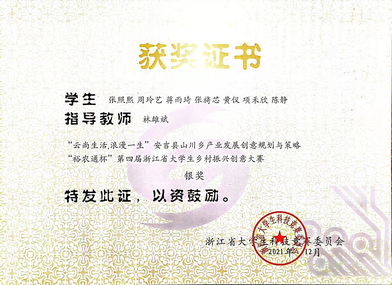 图 8 第四届浙江省大学生乡村振兴创意大赛银奖