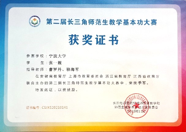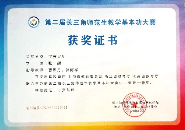 2. 2020年第二届长三角师范生教学基本功大赛 一等奖、季军
