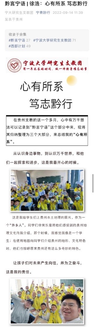 第23、24和25届研究生支教团,远赴贵州展开支教活动,为服务山区基础教育事业积极奉献自我。地理师范学子用实际行动诠释“奉献、友爱、互助、进步”的志愿服务精神,让青春在祖国的西南大地绽放绚丽之花,展现出“昂扬向上、乐于奉献”的精神与风貌,体现出开元网