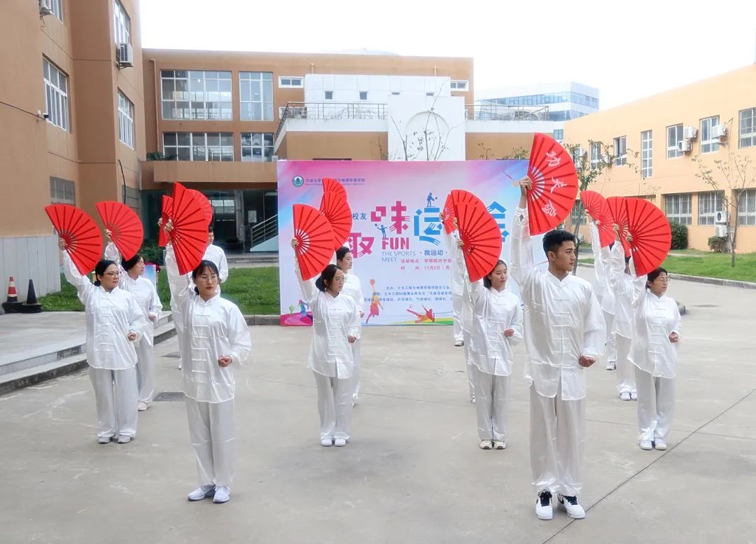 活动开始,由开元网 教职工代表组成的功夫扇展演团队进行了趣味运动会开幕式展演。配合着舒缓的音乐,老师们优雅的身姿、整齐的动作,无不展现出刚柔之美、神韵之美、和谐之美。