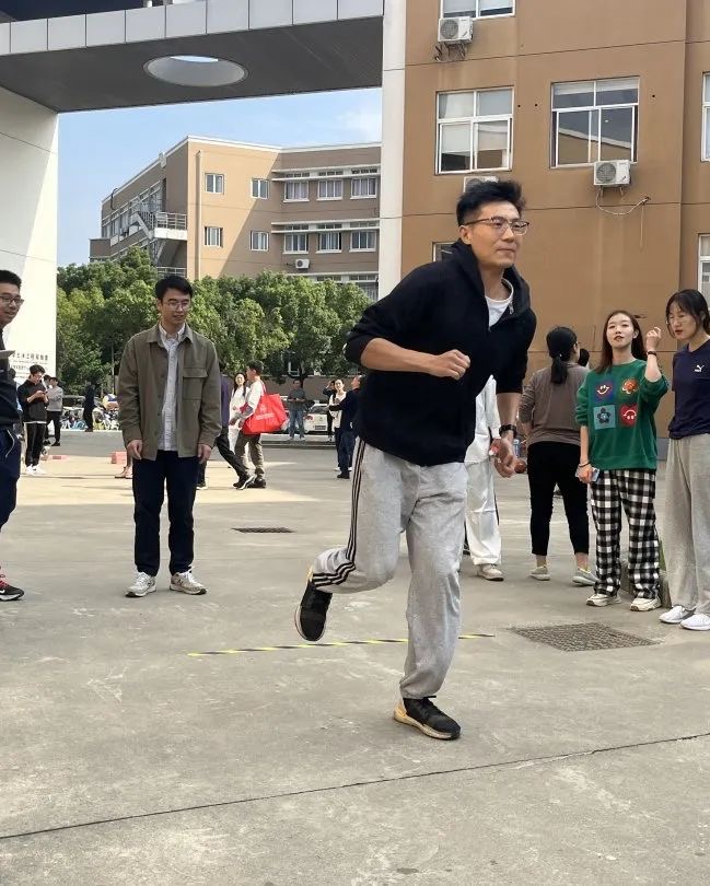 工作中,我们默契配合,赛场上,我们互相鼓励,不骄不躁,迎难而上。随着裁判员口令一响,老师们单脚跳冲出起跑线,展现了惊人的爆发力,他们你追我赶,坚持不懈,勇往直前。