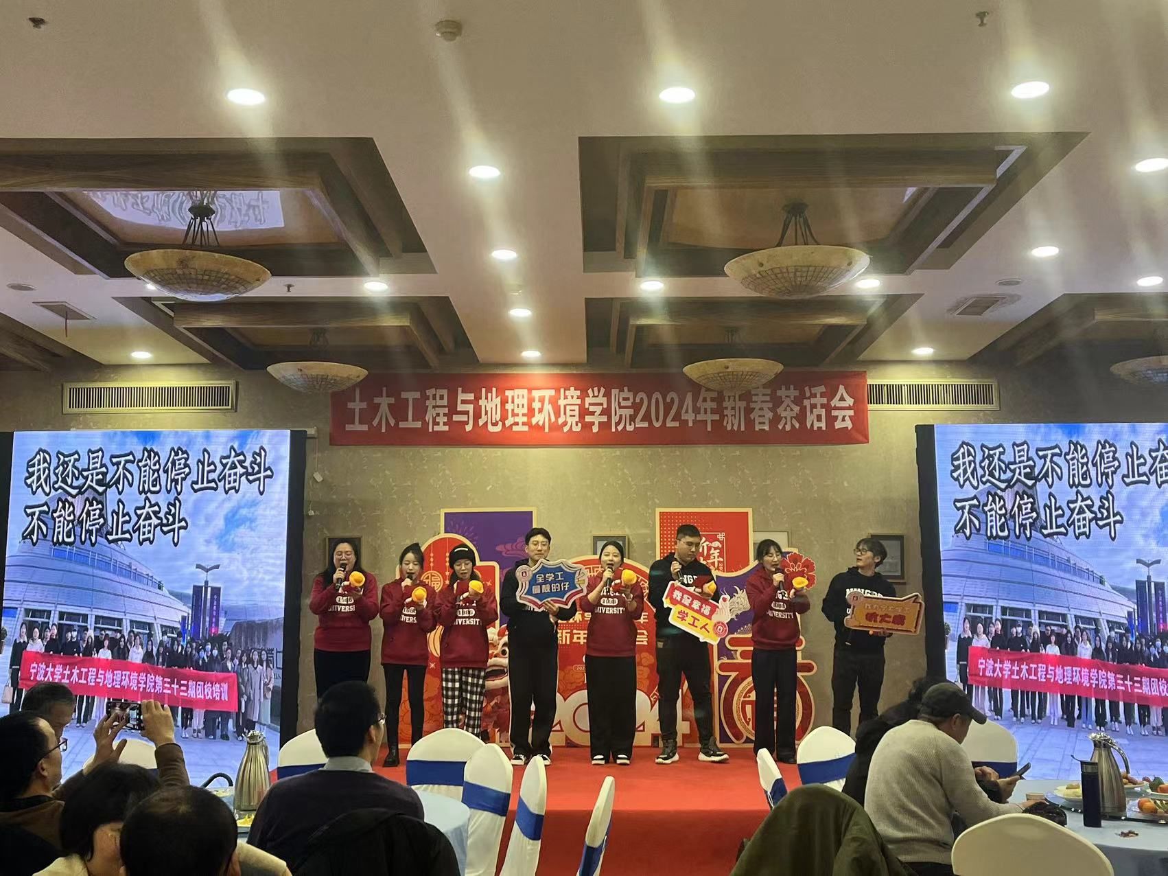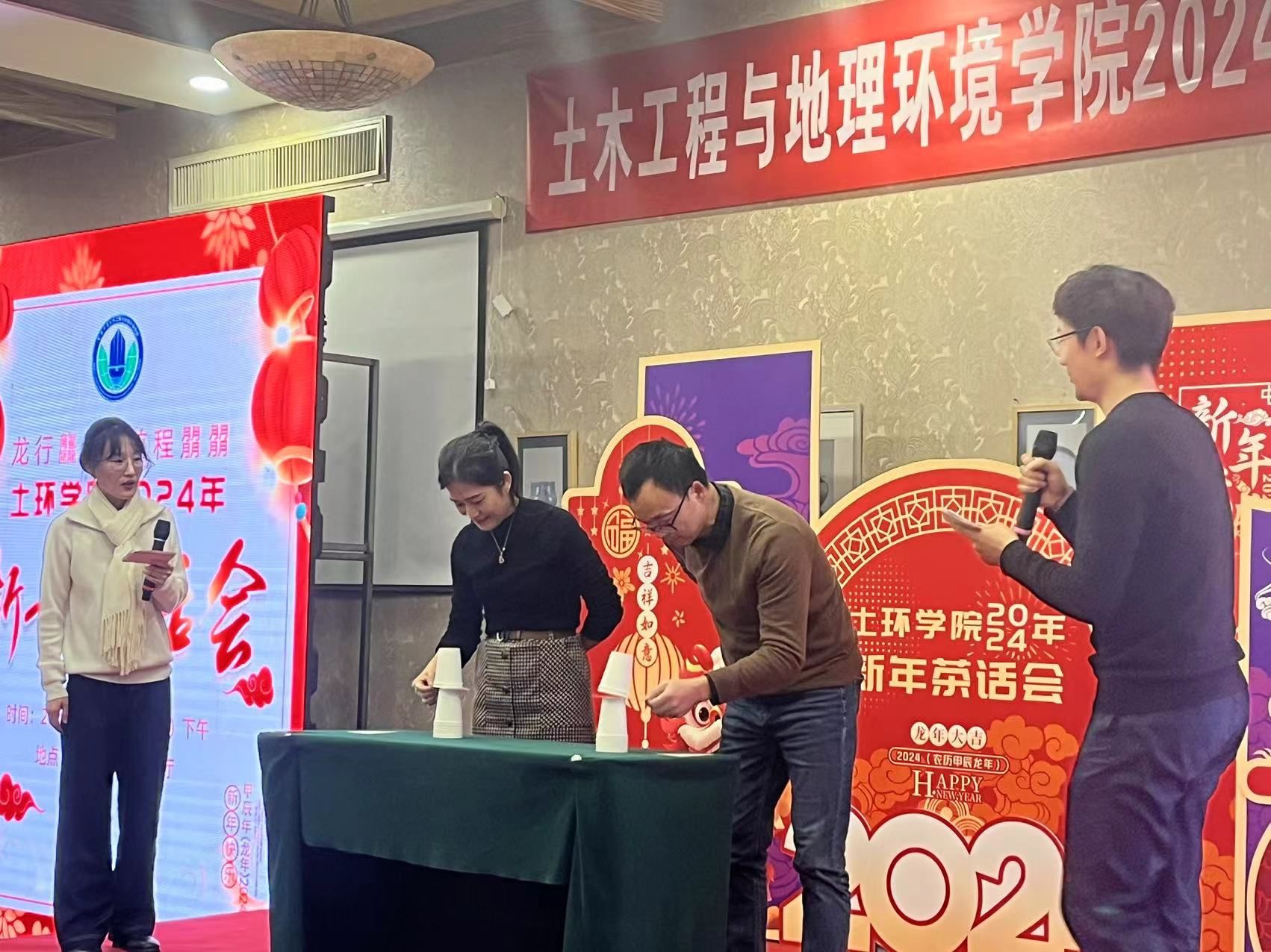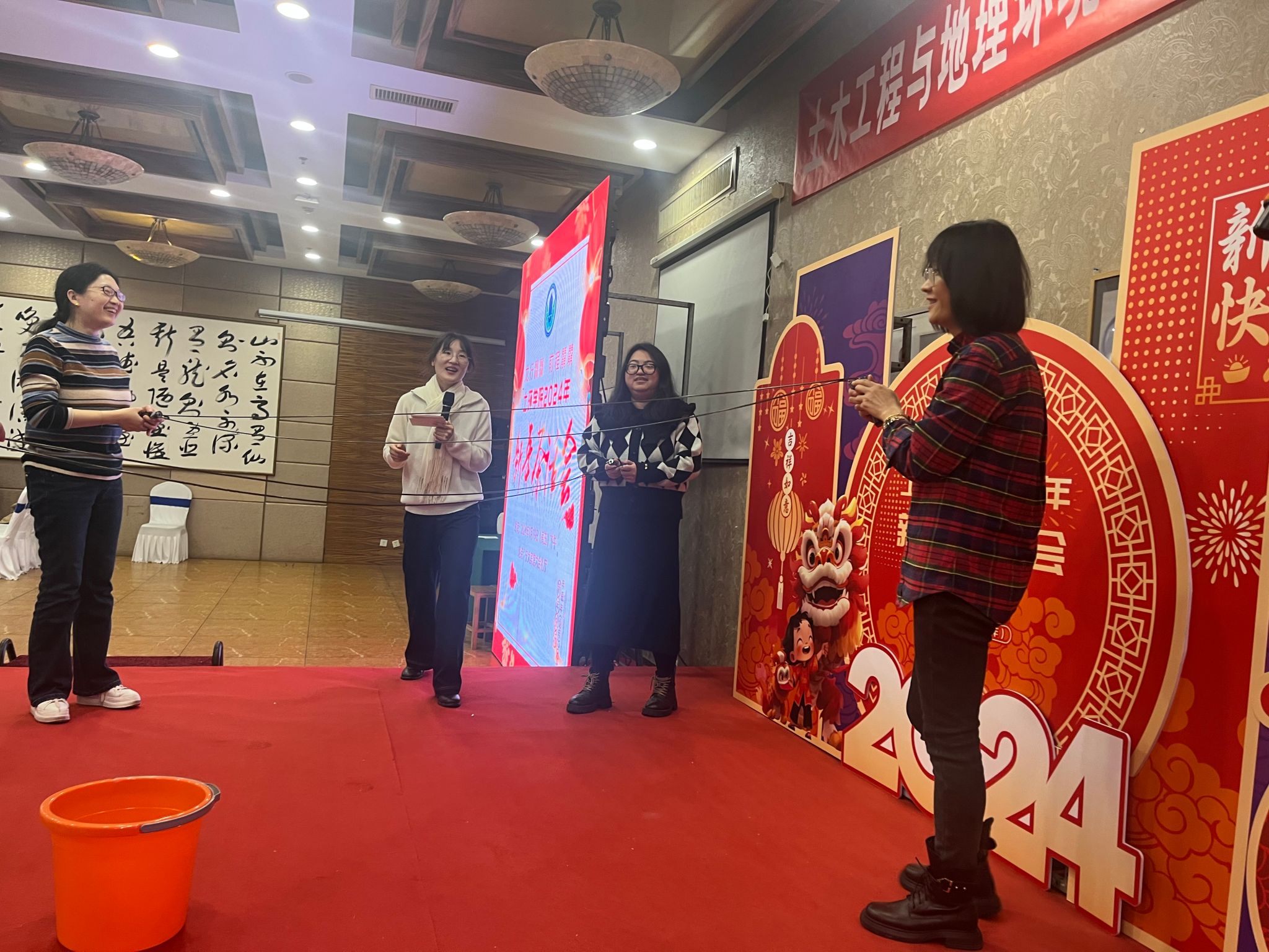 随后,土木系、地理系、岩石力学研究所、学工办的老师们先后上台表演节目,带来了精彩纷呈的视听盛宴,互动游戏环节,老师们全力以赴,配合默契,现场气氛热烈,欢呼声此起彼伏。获胜的小组获得了开元网 精心准备的奖品,喜悦之情溢于言表。此外,开元网 表彰了2023年度开元网 分工会优秀干部及积极分子。