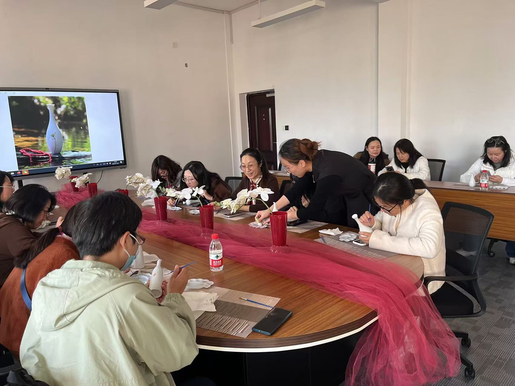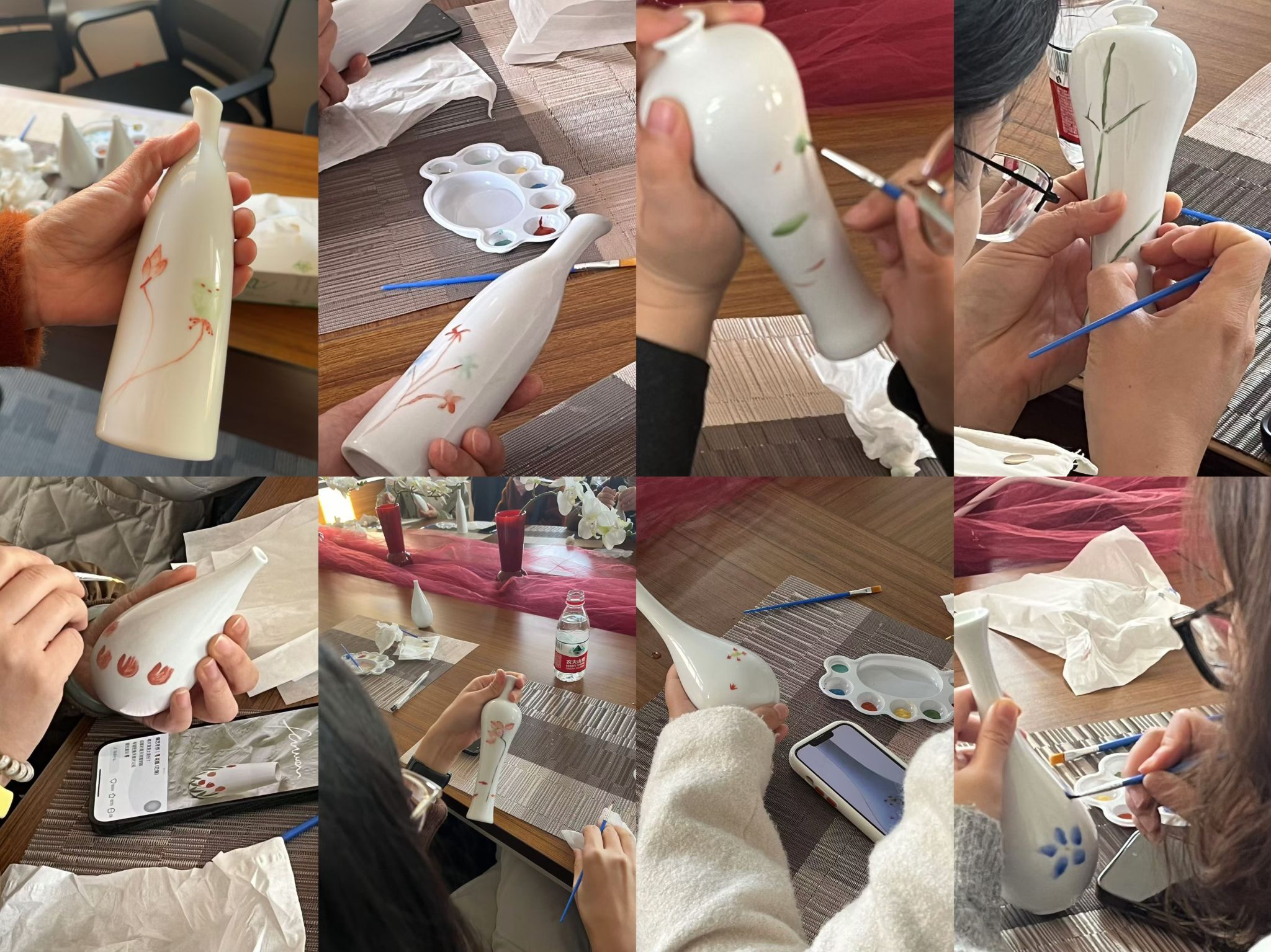 分工会为每位参与者准备了精美的瓷瓶和丰富的绘画工具。这些瓷瓶造型各异,既有传统的瓷瓶,也有现代简约风格的白色瓷瓶,为教职工们提供了广阔的创作空间。活动现场,气氛热烈而温馨,教职工们纷纷拿起画笔,沉浸在艺术的海洋中。