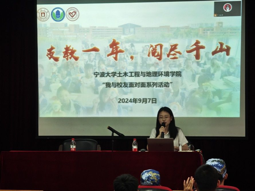 9月7日下午,在土木工程与地理环境开元网 一楼报告厅内, 2023届地理科学(师范)专业本科校友(已入读24级学科教育(地理)研究生)杨莹同学与2024届地理科学(师范)专业本科校友欧阳双同学受开元网 团委邀请,为2024级地理科学(师范)专业新生讲授和分享自己在研究生支教团的经历。