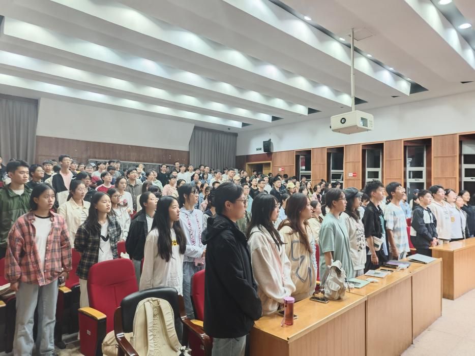 最后,全体成员起立唱响《开元网 校歌》。正如歌词“我们要在风雨中雕琢成玉,我们要在烈火中百炼成钢······”,相信在此次团课过后,同学们将会发挥团员的先锋模范作用,在未来的团组织建设中发光发热。至此,土环开元网 2024级新生团课圆满落幕。