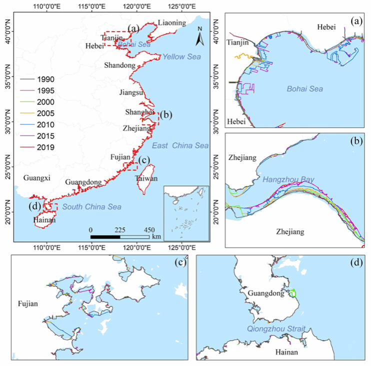 基于Landsat时间序列数据(1990-2019年)的中国大陆海岸线30年时空变化